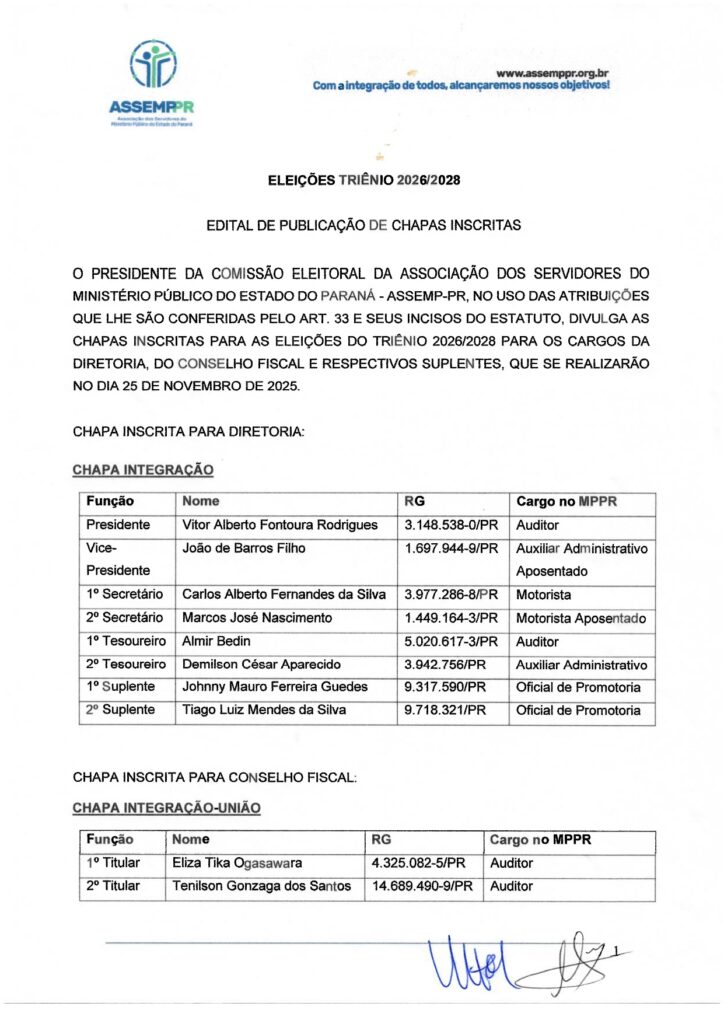 Edital de Publicação de Chapas inscritas para as eleições – triênio 2026-2028 6 nov, 2025 By Katia Francieli